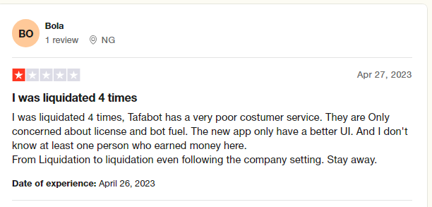 Also, many users shared their problems are TrustPilot-like platforms which Tafabot failed to address.