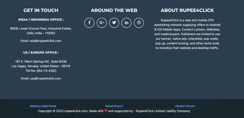 First of all Rupee4Click’s site footer have various information and everything is fake there.