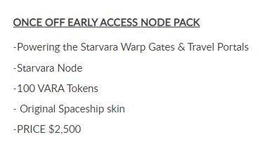 - Once Off Early Access Node Pack – $2500