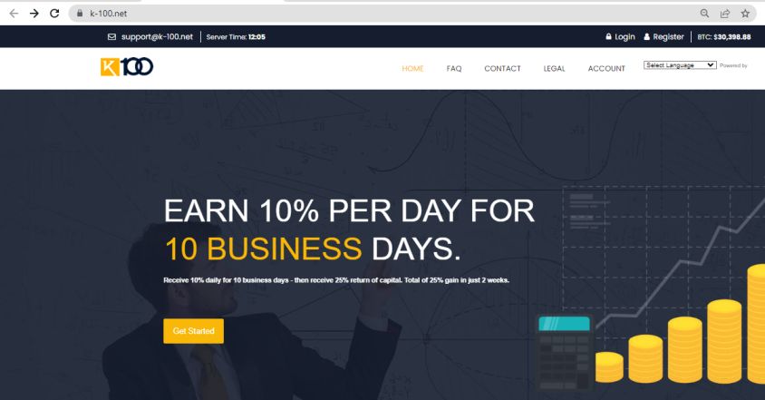 K-100.net is an investment website that offers a fund depositing service and profit-earning opportunities.
