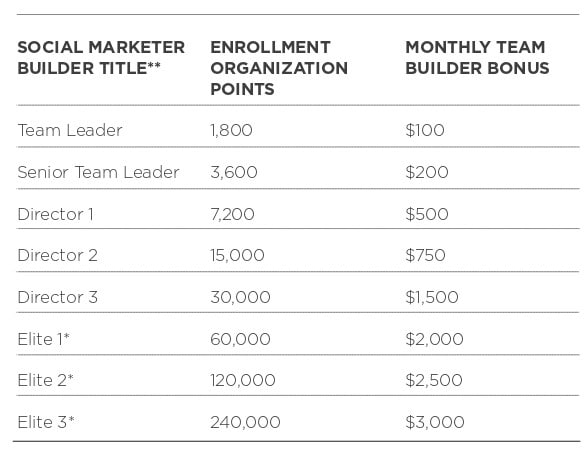 The monthly Team Builder Bonus is only for the US and Canada Social Marketer and it is paid on monthly basis.